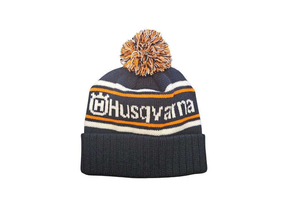 Lækker varm strikhue med Husqvarna-logo på fronten
