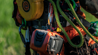 Det integrerede fastgøringsøje til reb gør det nemt at hejse saven op i et træ.