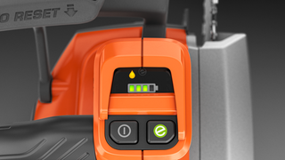 Når batteriet er aktiveret er opladningsstatus altid synlig. Derudover vil advarselslamper lyse, når motorsaven mangler kædeolie, eller hvis kædebræmsen er i on-mode.
