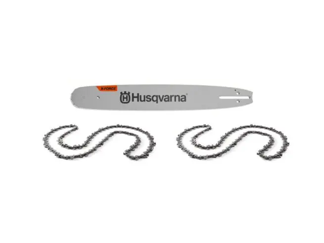 Med dette sværd- og kædesæt fra Husqvarna får du to X-Cut kæder og et X-Force sværd, så du er godt ekviperet, når du skal i skoven og arbejde.