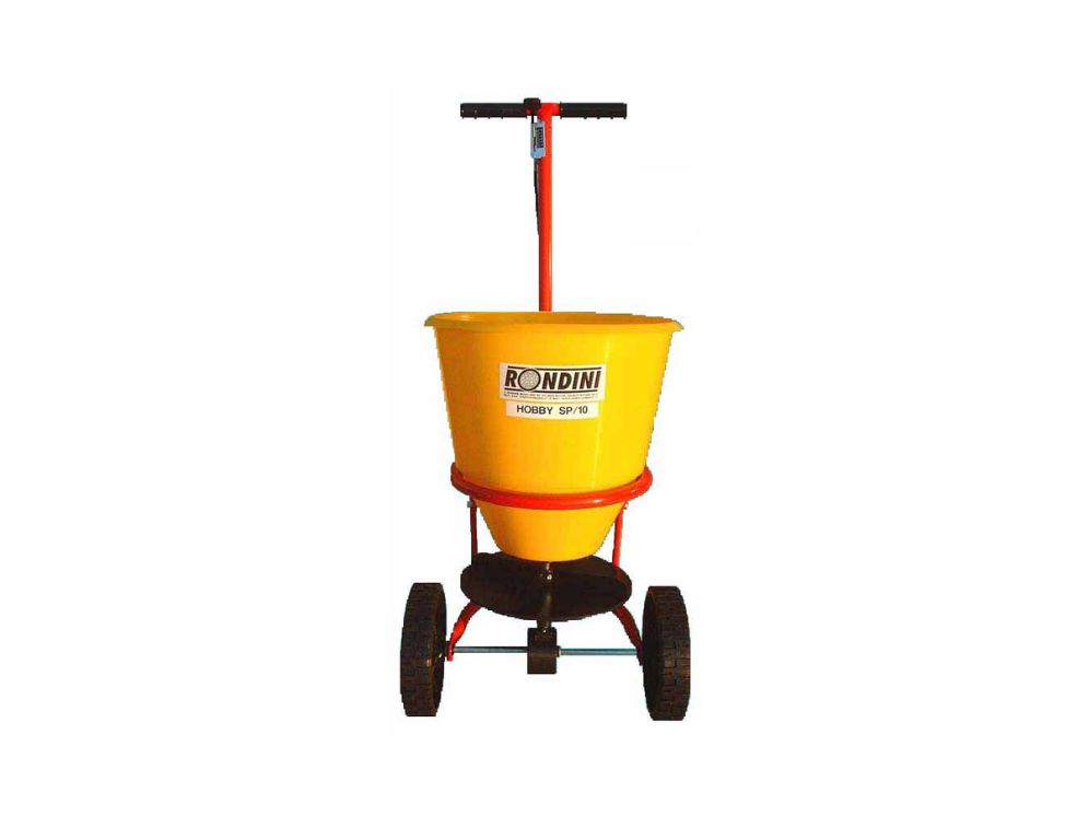 Rondini Hobby SP 10 kan både benyttes til spredning af salt og gødning.