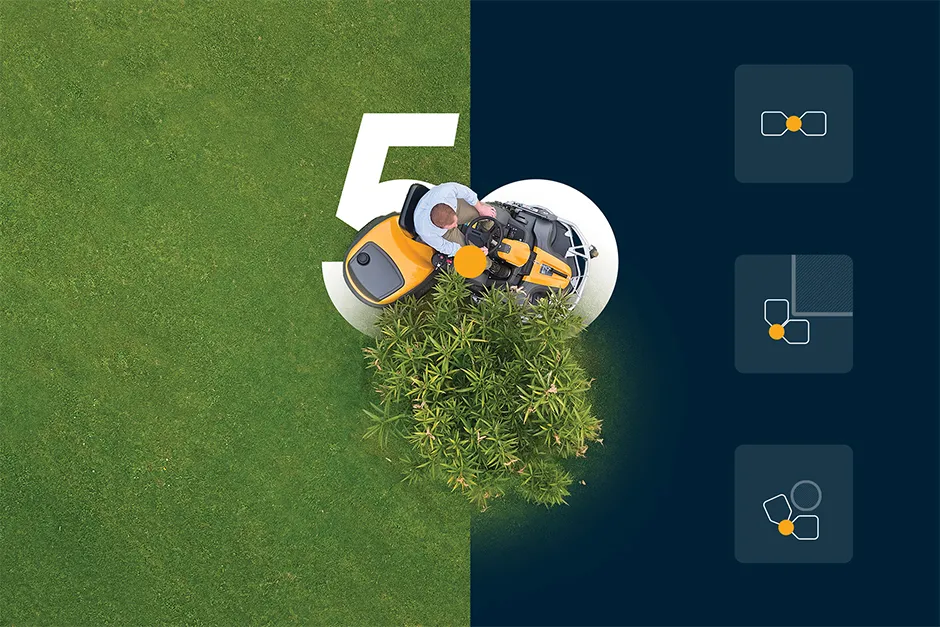 Knækstyringen tilfører en ekstraordinær manøvredygtighed. Når der drejes laver maskinen et knæk på midten. Baghjulene følger herefter med i samme spor som forhjulene, hvilket gør det muligt at klippe helt tæt på mure og hegn uden at skulle bekymre sig, om baghjulene rammer noget.