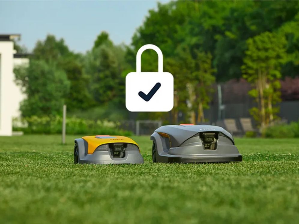Godkendelsessystem der registrerer og låser robotplæneklipperen, så det kun er registrerede godkendte brugere der kan styre og ændre i robottens instillinger.