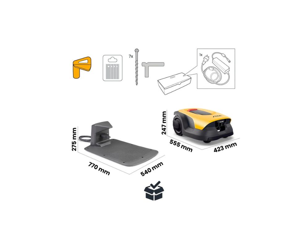 Efter robotplæneklipperen er pakket ud, skal du blot placere ladestationen. og forbinde robotten med appen. Dernæst registrerer du klippeområdet i appen, hvorpå robotten er klar til at gå i gang.