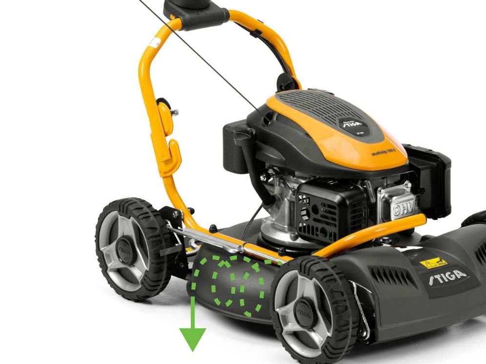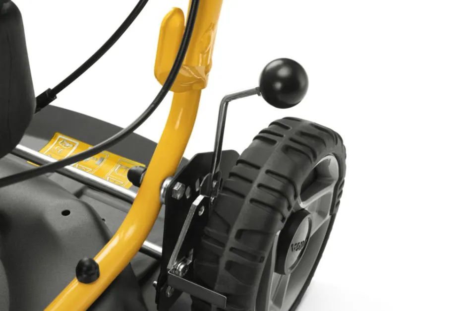 Via det ergonomsik udformede håndtag kan klippehøjden nemt indstilles i fem forskellige højder fra 31-75 mm.