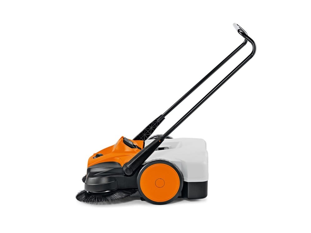STIHL KGA 770 er en effektstærk og praktisk batteri-fejemaskine til flade arealer på op til ca 2000 m2. Med de batteridrevne børster og fejevalse, kræves der næsten ingen kræfter for at køre maskinen. Maskinen er udstyret med STIHL Multi-Clean PLUS fejesystem – Et specielt børstesystem der gør, at mange forskellige slags skidt fejes op. De to tallerkenformede børster transporterer skidtet ind i den bagudvendte beholder, og ved hjælp af børsterne i siden, er der ikke noget smuds der kan gemme sig langs vægge og kanter – Alt fejes op! Derudover er STIHL KGA 770 udstyret med en rummelig opsamler på 50 l, som let og enkelt tømmes med nogle få håndgreb. Børsterne roterer også når fejemaskinen står stille. Maskinen kan også betjenes manuelt, altså uden batteri. Børsterne er fremstillet i slidstærkt nylon med 4 års garanti mod slitage. Perfekt maskine til indendørs brug i eksempelvis garager eller lagerlokaler.