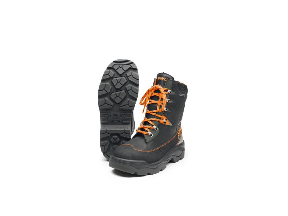 DYNAMIC GTX indeholder skærebeskyttelse og stålkappe, hvilket gør den egnet til arbejde med motorsav. Sikkerhedsstøvlen er fremstillet i kernelæder af god kvalitet og en vandafvisende GORE-TEX-membran.